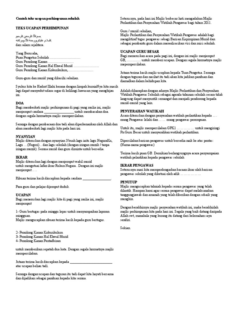 Teks Ucapan Perhimpunan Sekolah - Use the download button below or simple online reader.. السلام عليكم ورحمة الله وبركاته. Teks ucapan pengerusi majlis bismillahirrahmanirrahim. Singkat padat dan jelas mudah dipelajari. Agaknya pantun ni sesuai tak untuk majlis rasmi memoriku memorimu jua. Teks majlis kuarter master teks ucapan majlis kuarter master.
