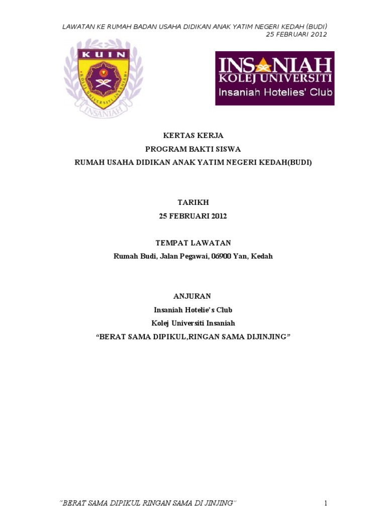 Contoh kertas kerja lawatan kel lua. Lawatan sambil belajar di kilang teh boh 7.0 anggaran perbelanjaan lampiran 1 8.0 tentatif program lampiran 2 9.0 ahli jawatankuasa pelaksana program lampiran 3 10.0 penutup lawatan ini bertujuan memberi maklumat. 11 mac 2015 ( rabu ). Savesave contoh kertas kerja program lawatan for later. 6.0 aktiviti yang dijalankan i.