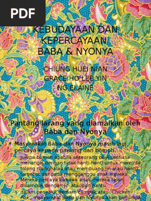 Related : Pantang Larang Baba Nyonya - Cina Peranakan Slide - Ini menunjukkan bahawa masyarakat baba dan nyonya mempunyai mirip yang sama dengan masyarakat melayu..